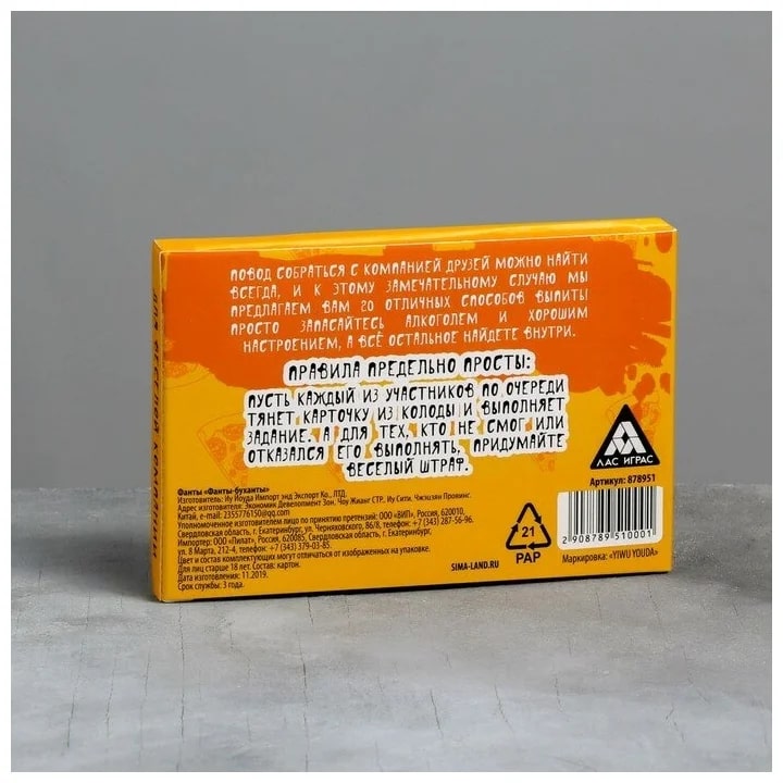 Купить игра для компании "фанты буханты" 20 карт от 100 руб. с доставкой до пункта выдачи в Гатчине. Интернет магазин ДекаМаркет. Оплата при получении.