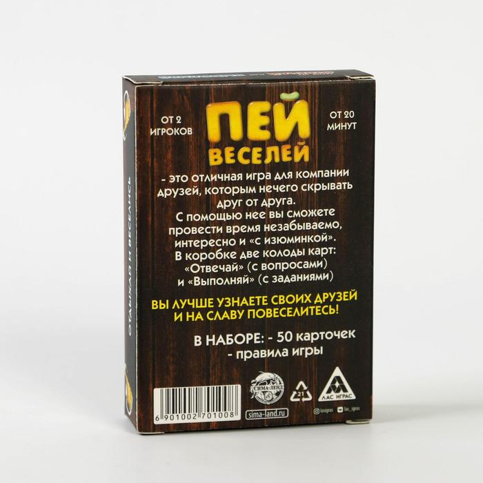 Купить игра для компании "пей веселей" 50 карт от 180 руб. с доставкой до пункта выдачи в Гатчине. Интернет магазин ДекаМаркет. Оплата при получении.