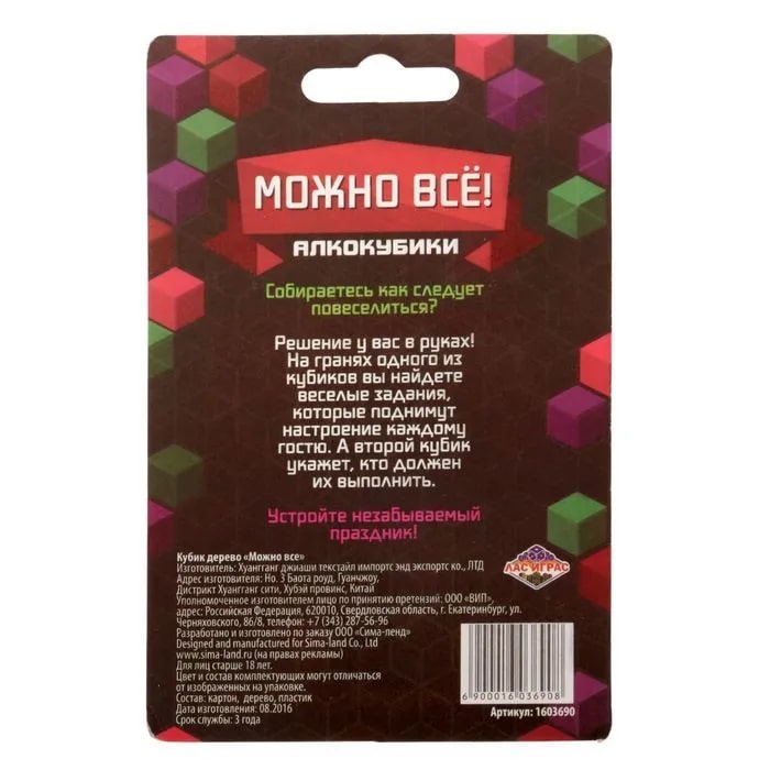 Купить кубик "можно все", алкокубики для принятия решений от 60 руб. с доставкой до пункта выдачи в Гатчине. Интернет магазин ДекаМаркет. Оплата при получении.
